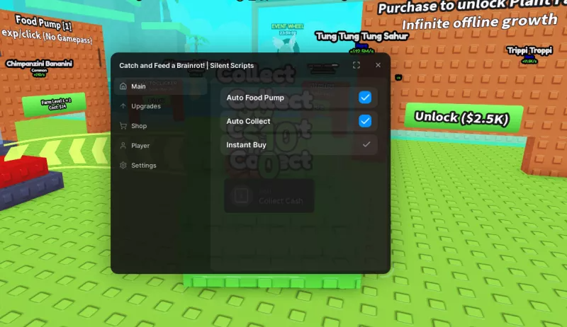 The best keyless script for the Hub for Catch and Feed A Brainrot game. It offers Auto Food Pump, Auto Collect, and Instant Buy, among many other features. (Doesn't work with...